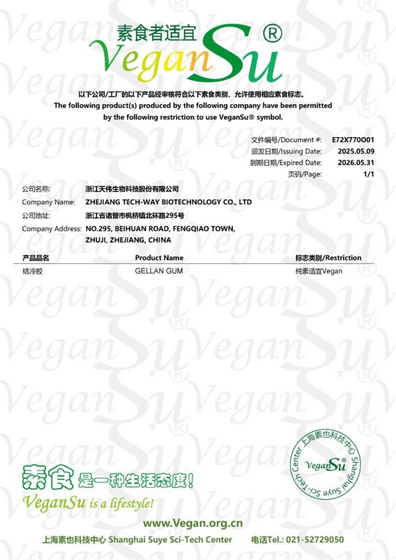 结冷胶是新一代微生物多糖产品,应用前景广阔,我们将秉承“与客户共同成长,实现双赢”的理念,依靠先进的技术和优良的服务,引领亲水胶体在食品工业上应用的未来。